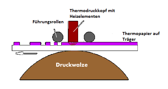 Thermodirektdrucker: Thermodirektdrucker benötigen kein Farbband oder Toner. Dafür benötigen sie ein thermosensitives Spezialpapier, das von dem Druckkopf an den Stellen erhitzt wird, wo später die Informationen wie zum Beispiel Texte oder Grafiken stehen sollen. Das klassische Thermopapier ist Licht- und Temperaturempfindlich, deswegen empfiehlt es sich, qualitativ besseres Papier zu kaufen. Wenn dieses Licht- und hitzegeschützt gelagert wird, kann man die Ausdrucke auch noch nach vielen Jahren lesen. Für einige Papiersorten garantieren die Hersteller 25 Jahre Haltbarkeit. Außerdem haben heutige Papiersorten eine deutlich bessere Resistenz gegen Umwelteinflüsse. Dies wird unter anderem durch das Aufbringen einer Schutzschicht, die aus Topcoat besteht erreicht, aber auch durch die Verbesserung der Rezeptur. Thermodirektdrucker sind sehr leicht aufgebaut, kosten wenig und haben hohe Druckgeschwindigkeiten. Daher werden sie besonders für Preisetiketten, Belege Paketaufkleber oder auch Eintrittskarten verwendet.