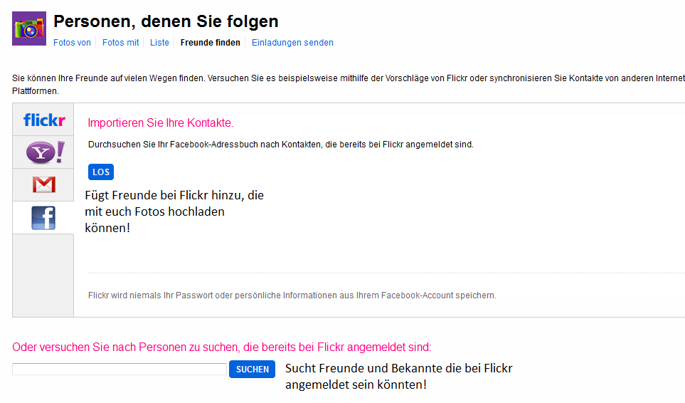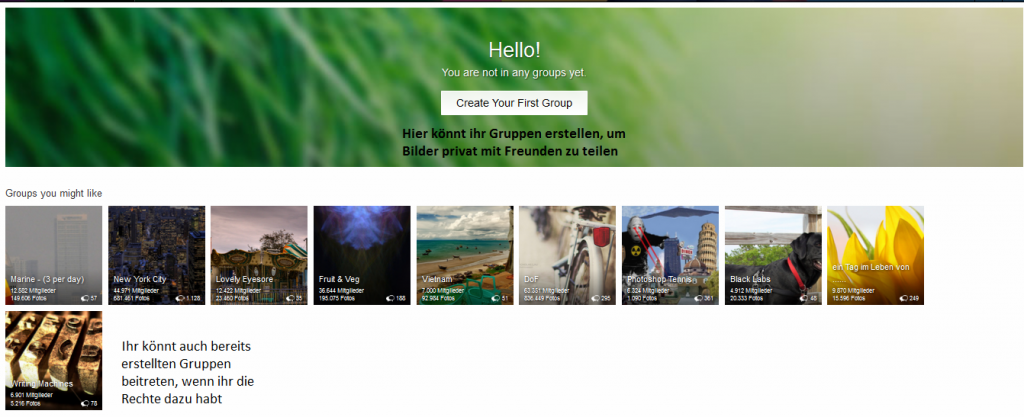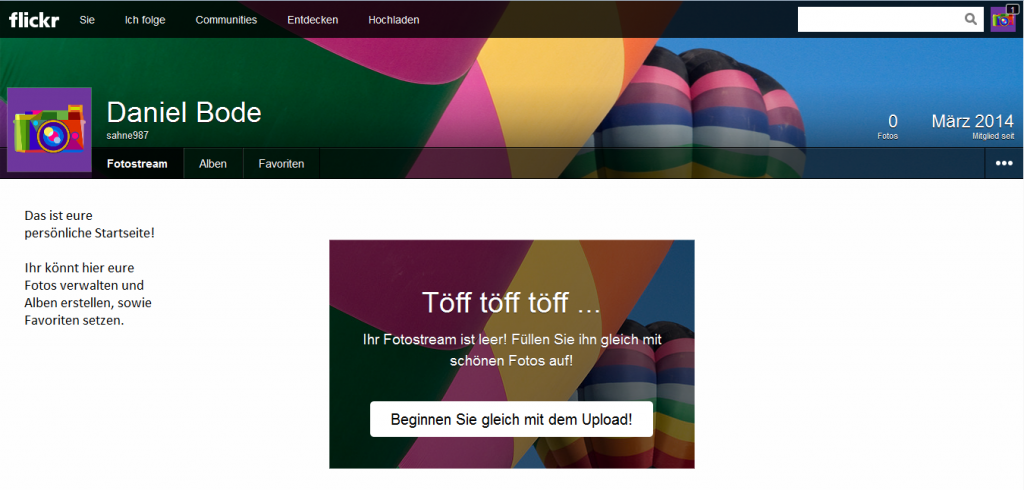 Und in Flickr werde ich den Aufbau der ganzen Seite zeigen, sowie das hochladen von Bildern.